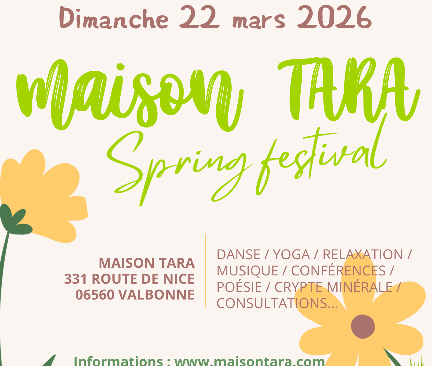 Bienvenue à toutes et à tous. A la joie de vous accueillir à Maison TARA et de partager ces ateliers et spectacles avec vous !